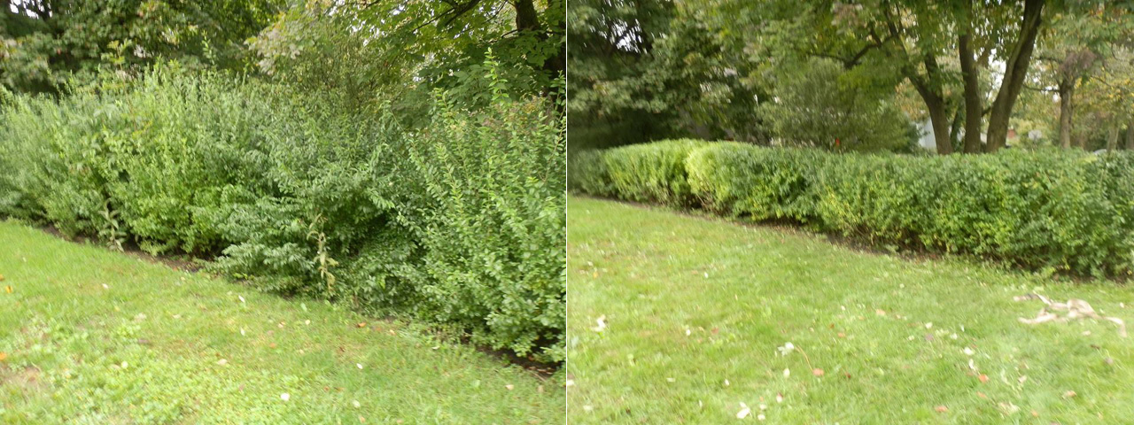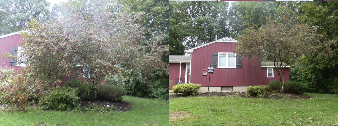 Spring & Fall clean-ups are one of our specialties. For lots of homeowners, the yearly task of raking leaves is a bothersome chore whether in the Spring or in the Fall. Would you rather watch the game or tackle another project on your list? Let us take care of the leaf removal job for you. No yard scares us! We've seen it all. As shown in the before and after photos above, we will leave your lawn clean and free of leaves and you can cross this chore off your list.